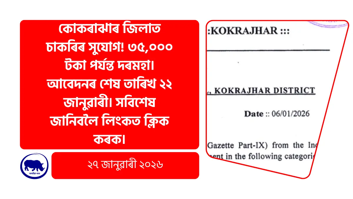 Kokrajhar Recruitment 2026: কোকৰাঝাৰ জিলাত নতুন চাকৰি! ৩৫,০০০ টকা পৰ্যন্ত দৰমহা; কেনেকৈ আবেদন কৰিব জানক।