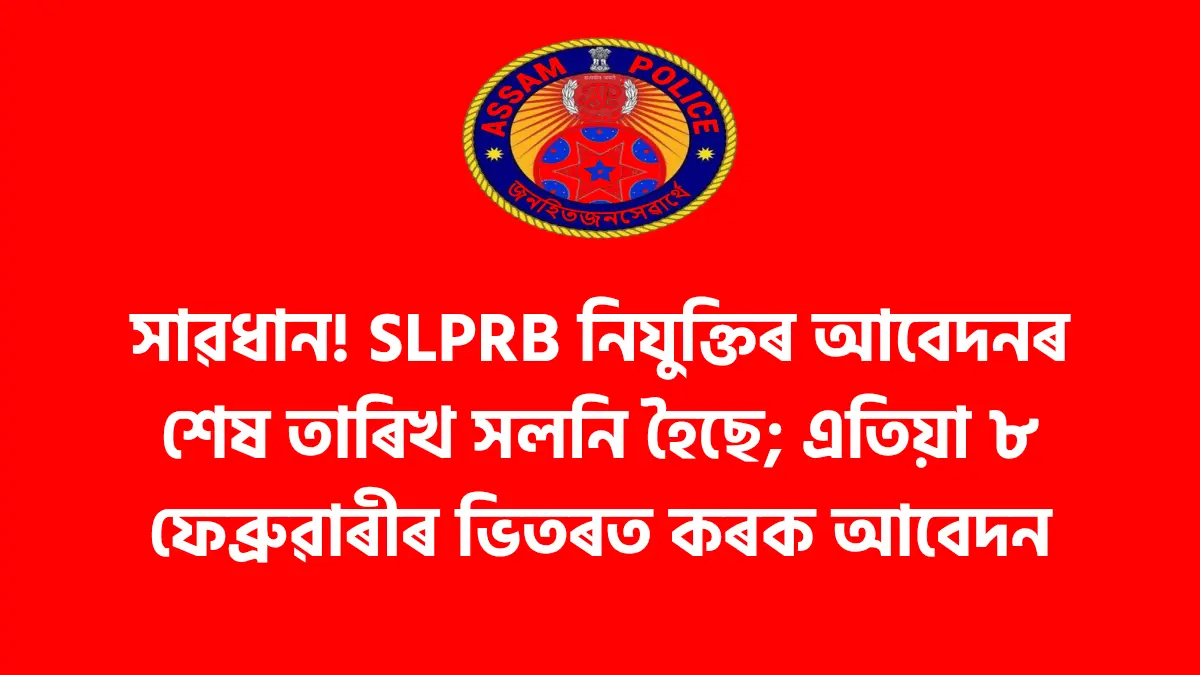 SLPRB Assam Recruitment 2026: সাৱধান! অনলাইন আবেদনৰ শেষ তাৰিখ সলনি হ’ল; এতিয়া ৮ ফেব্ৰুৱাৰীৰ ভিতৰত কৰক আবেদন।